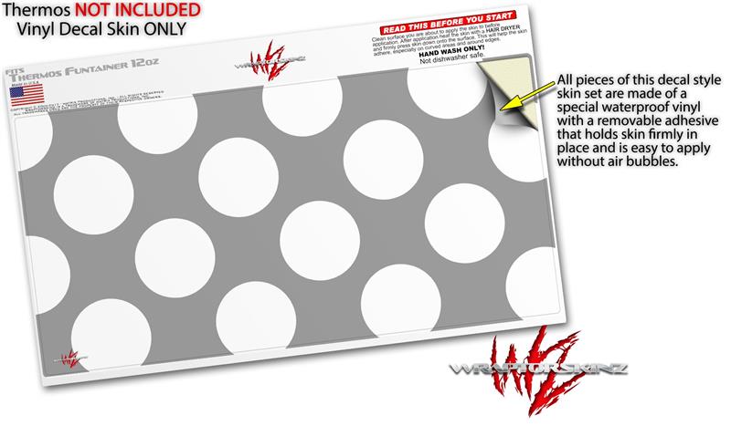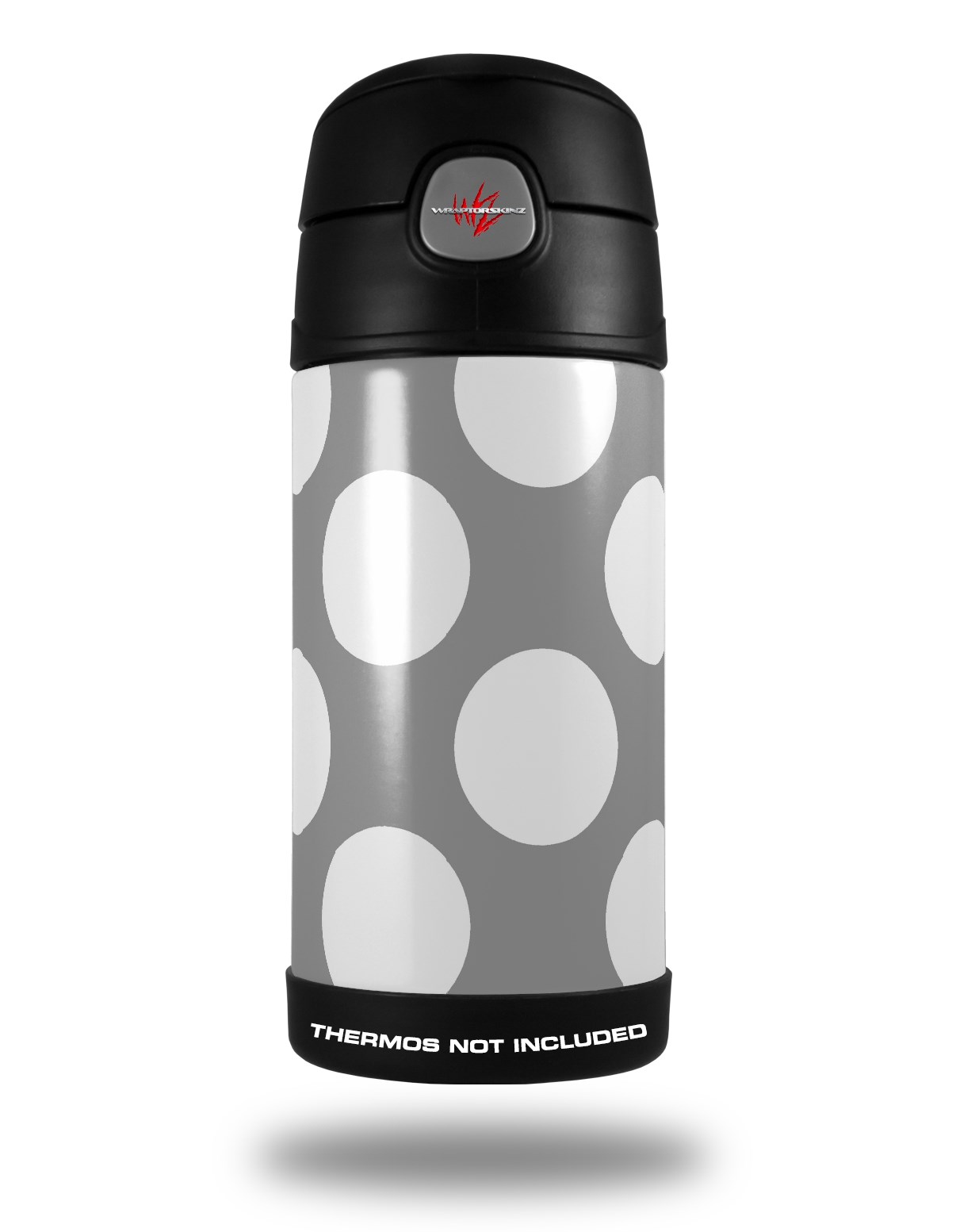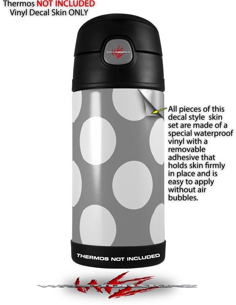 Skin Decal Wrap for Thermos Funtainer 12oz Bottle Kearas Polka Dots Whtie On Gray (BOTTLE NOT INCLUDED) by WraptorSkinz