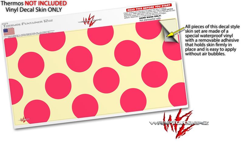 Skin Decal Wrap for Thermos Funtainer 12oz Bottle Kearas Polka Dots Pink On Cream (BOTTLE NOT INCLUDED) by WraptorSkinz