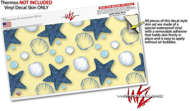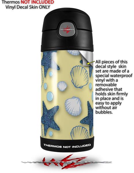 Skin Decal Wrap for Thermos Funtainer 12oz Bottle Starfish and Sea Shells Yellow Sunshine (BOTTLE NOT INCLUDED) by WraptorSkinz