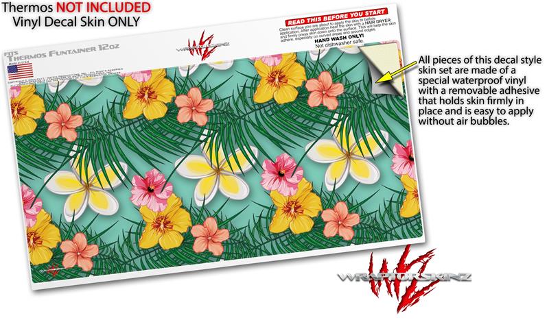 Skin Decal Wrap for Thermos Funtainer 12oz Bottle Beach Flowers 02 Seafoam Green (BOTTLE NOT INCLUDED) by WraptorSkinz