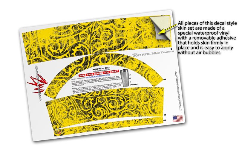 WraptorSkinz Skin Wrap compatible with 2017 and newer RTIC Tumblers 30oz Folder Doodles Yellow (TUMBLER NOT INCLUDED)