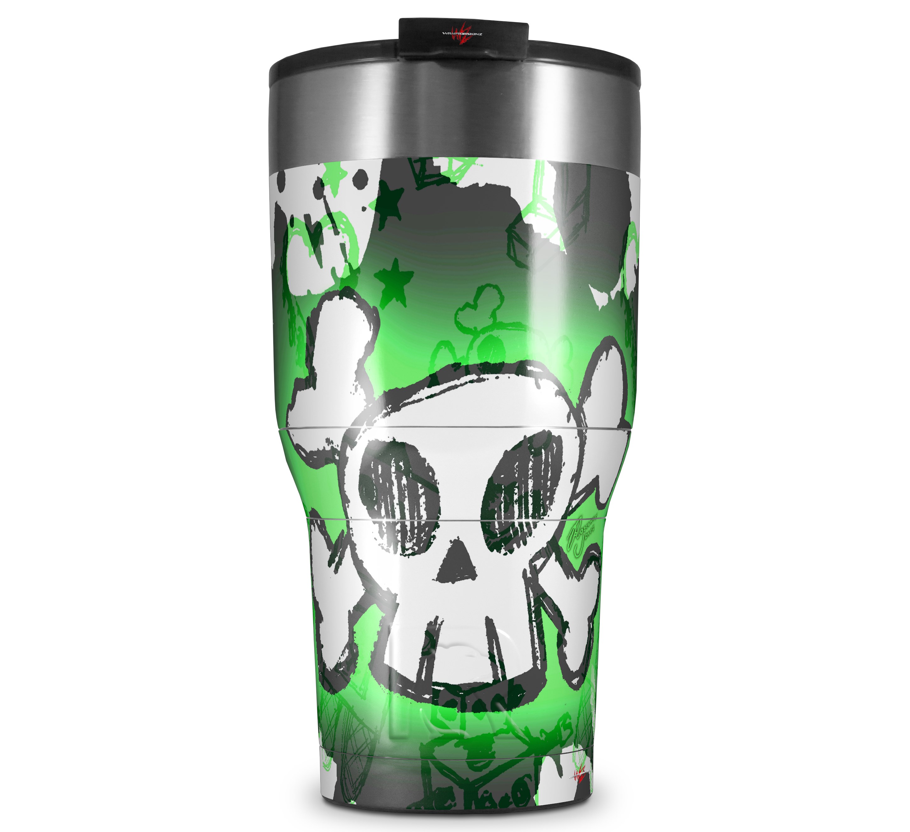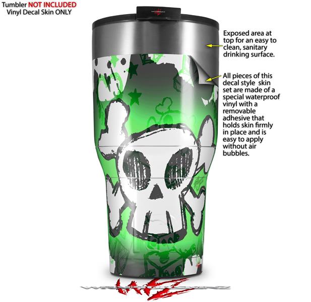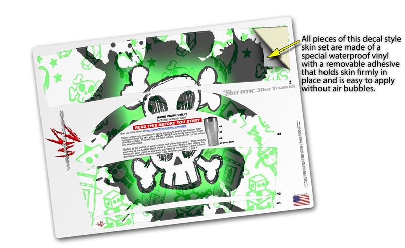 WraptorSkinz Skin Wrap compatible with 2017 and newer RTIC Tumblers 30oz Cartoon Skull Green (TUMBLER NOT INCLUDED)