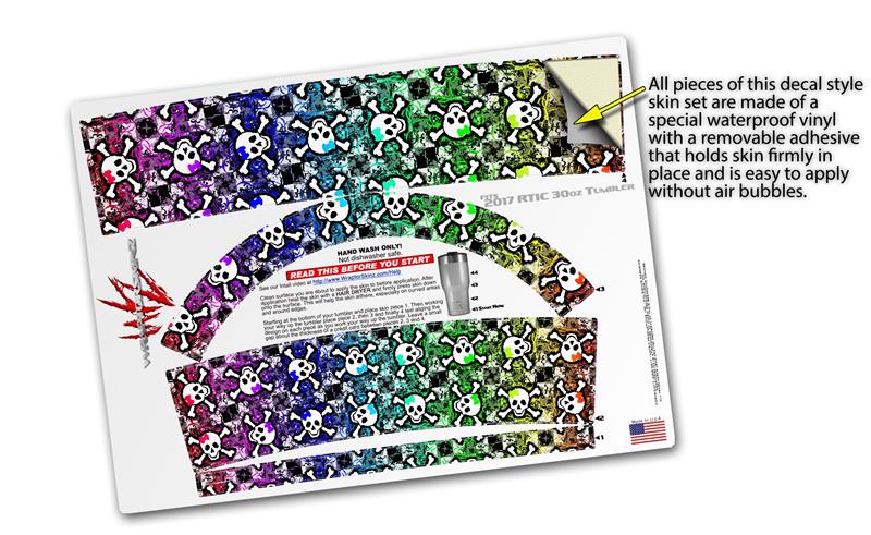 WraptorSkinz Skin Wrap compatible with 2017 and newer RTIC Tumblers 30oz Splatter Girly Skull Rainbow (TUMBLER NOT INCLUDED)