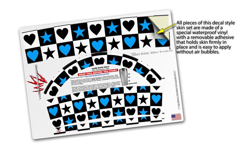 WraptorSkinz Skin Wrap compatible with 2017 and newer RTIC Tumblers 30oz Hearts And Stars Blue (TUMBLER NOT INCLUDED)
