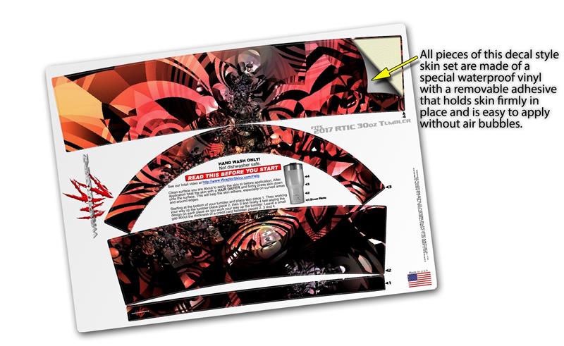 WraptorSkinz® skin wraps for 2017 RTIC Tumblers are printed using superb photo quality designs and vibrant colors printed with special fade resistant inks that last even in direct sun for years. WraptorSkinz® are a composite of two layers of commercial grade materials. The bottom layer is a soft, flexible vinyl with a special removable adhesive that is easily positioned, applied without air bubbles. Next we print the bottom layer with UV protected, fade resistant inks that deliver superb photo quality designs in vibrant colors. Finally we bond a professional grade laminate over the entire skin adding a glossy protective finish.