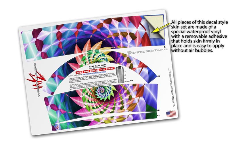WraptorSkinz® skin wraps for 2017 RTIC Tumblers are printed using superb photo quality designs and vibrant colors printed with special fade resistant inks that last even in direct sun for years. WraptorSkinz® are a composite of two layers of commercial grade materials. The bottom layer is a soft, flexible vinyl with a special removable adhesive that is easily positioned, applied without air bubbles. Next we print the bottom layer with UV protected, fade resistant inks that deliver superb photo quality designs in vibrant colors. Finally we bond a professional grade laminate over the entire skin adding a glossy protective finish.