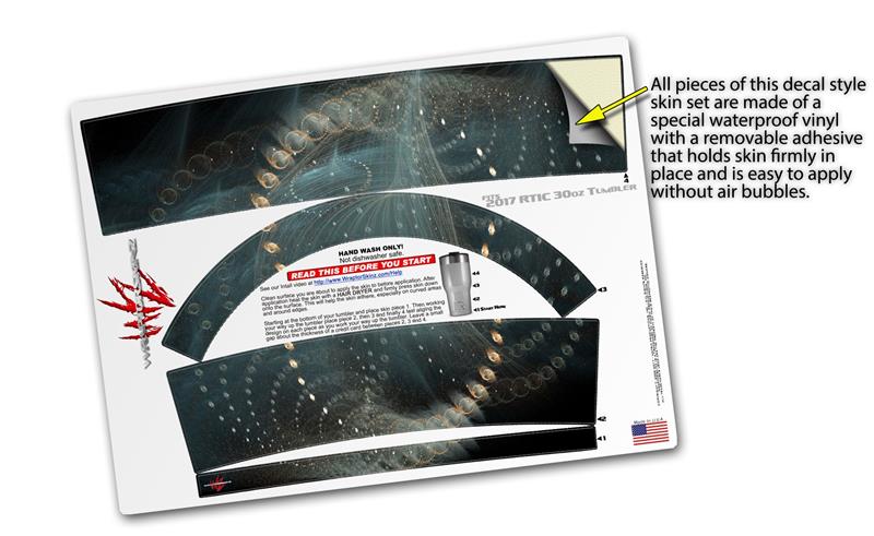 WraptorSkinz® skin wraps for 2017 RTIC Tumblers are printed using superb photo quality designs and vibrant colors printed with special fade resistant inks that last even in direct sun for years. WraptorSkinz® are a composite of two layers of commercial grade materials. The bottom layer is a soft, flexible vinyl with a special removable adhesive that is easily positioned, applied without air bubbles. Next we print the bottom layer with UV protected, fade resistant inks that deliver superb photo quality designs in vibrant colors. Finally we bond a professional grade laminate over the entire skin adding a glossy protective finish.