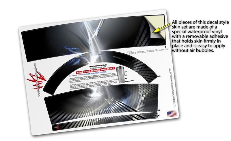 WraptorSkinz® skin wraps for 2017 RTIC Tumblers are printed using superb photo quality designs and vibrant colors printed with special fade resistant inks that last even in direct sun for years. WraptorSkinz® are a composite of two layers of commercial grade materials. The bottom layer is a soft, flexible vinyl with a special removable adhesive that is easily positioned, applied without air bubbles. Next we print the bottom layer with UV protected, fade resistant inks that deliver superb photo quality designs in vibrant colors. Finally we bond a professional grade laminate over the entire skin adding a glossy protective finish.