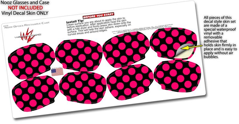 Decal Style Vinyl Skin Wrap 2 Pack for Nooz Glasses Rectangle Case Kearas Polka Dots Pink On Black (NOOZ NOT INCLUDED) by WraptorSkinz