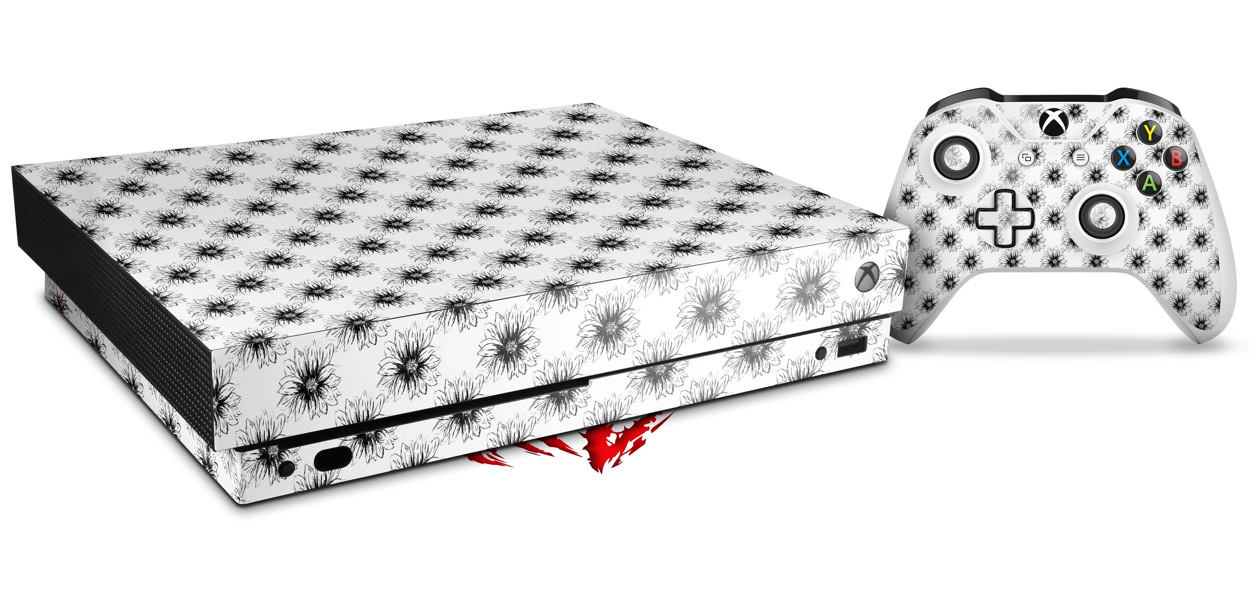 Skin Wrap for XBOX One X Console and Controller Kearas Daisies Black on White