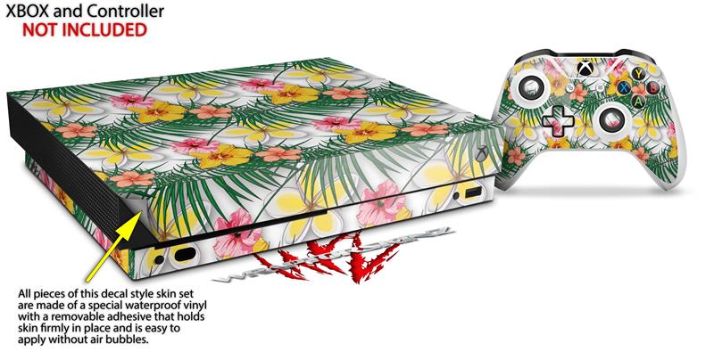 Skin Wrap for XBOX One X Console and Controller Beach Flowers 02 White