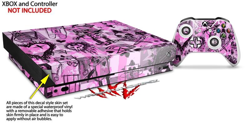 Skin Wrap for XBOX One X Console and Controller Scene Kid Sketches Pink