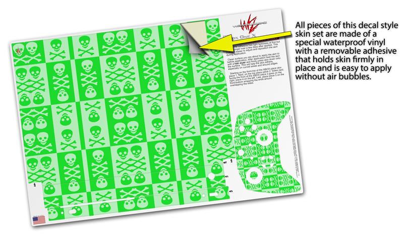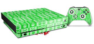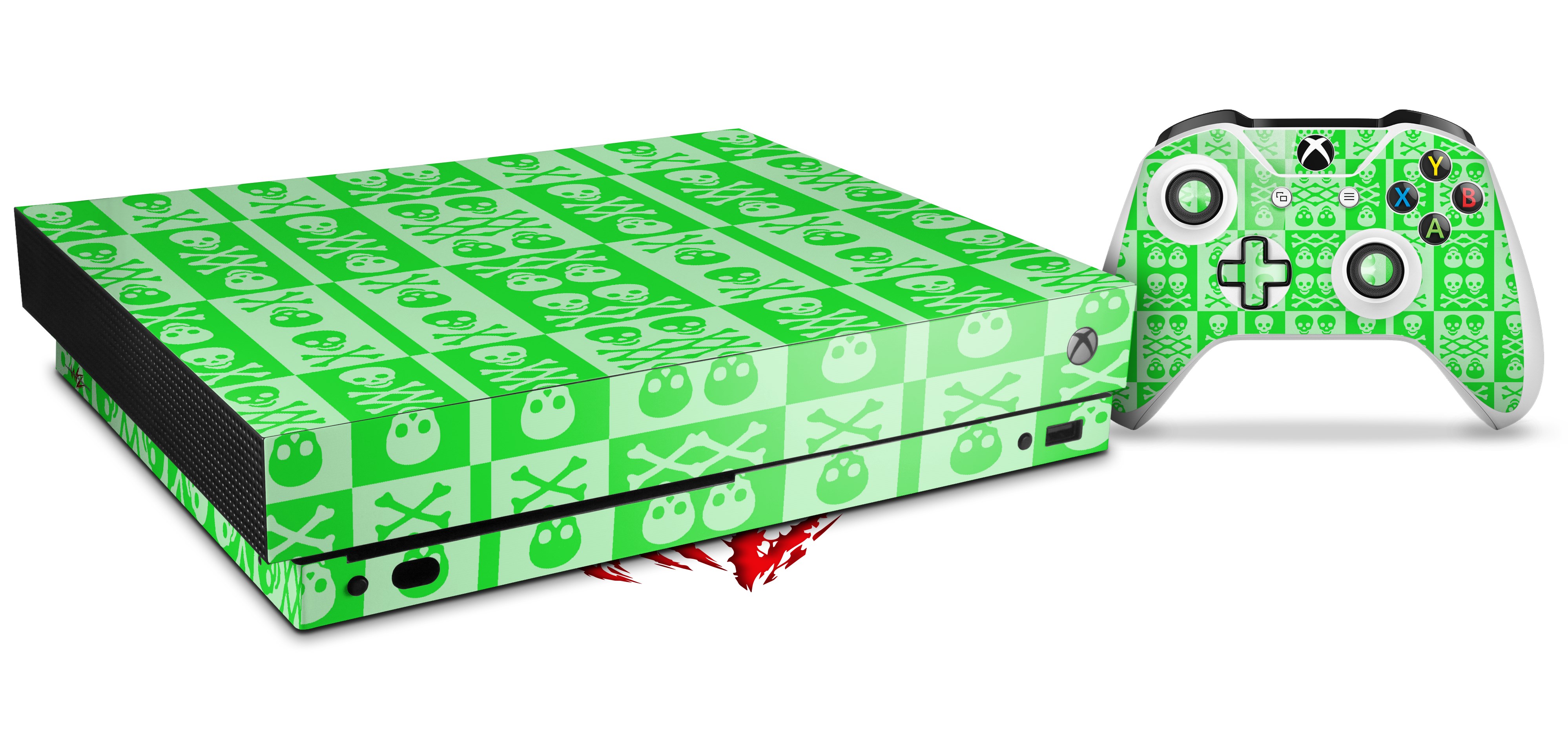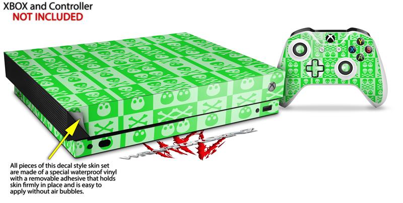 Skin Wrap for XBOX One X Console and Controller Skull And Crossbones Pattern Green