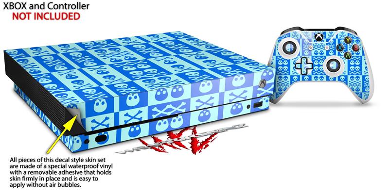 Skin Wrap for XBOX One X Console and Controller Skull And Crossbones Pattern Blue