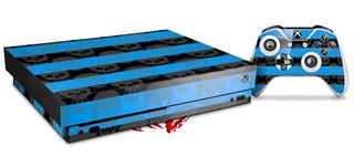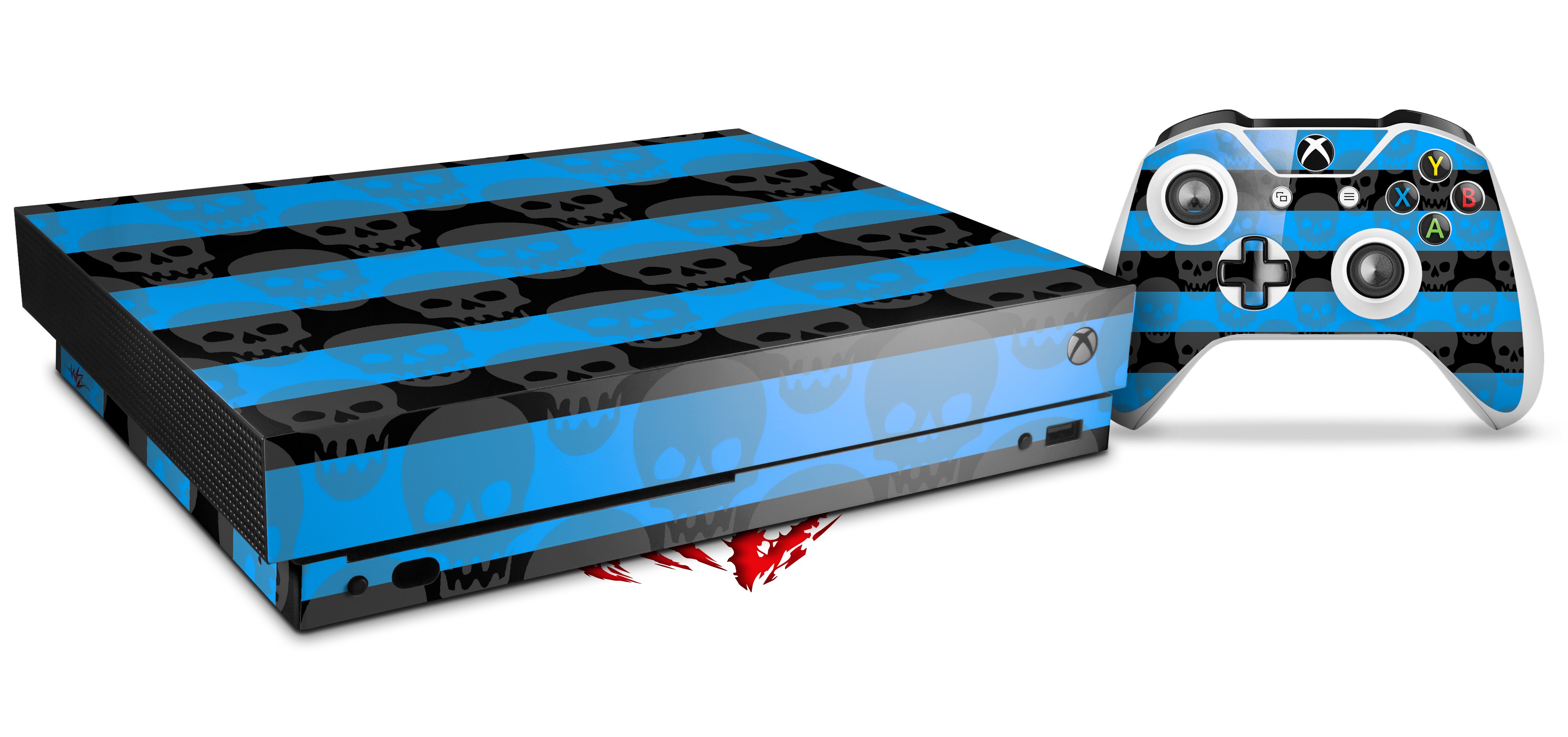 Skin Wrap for XBOX One X Console and Controller Skull Stripes Blue