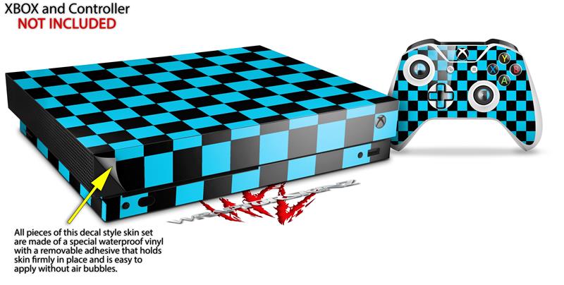Skin Wrap for XBOX One X Console and Controller Checkers Blue