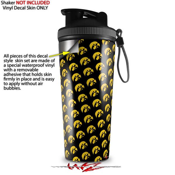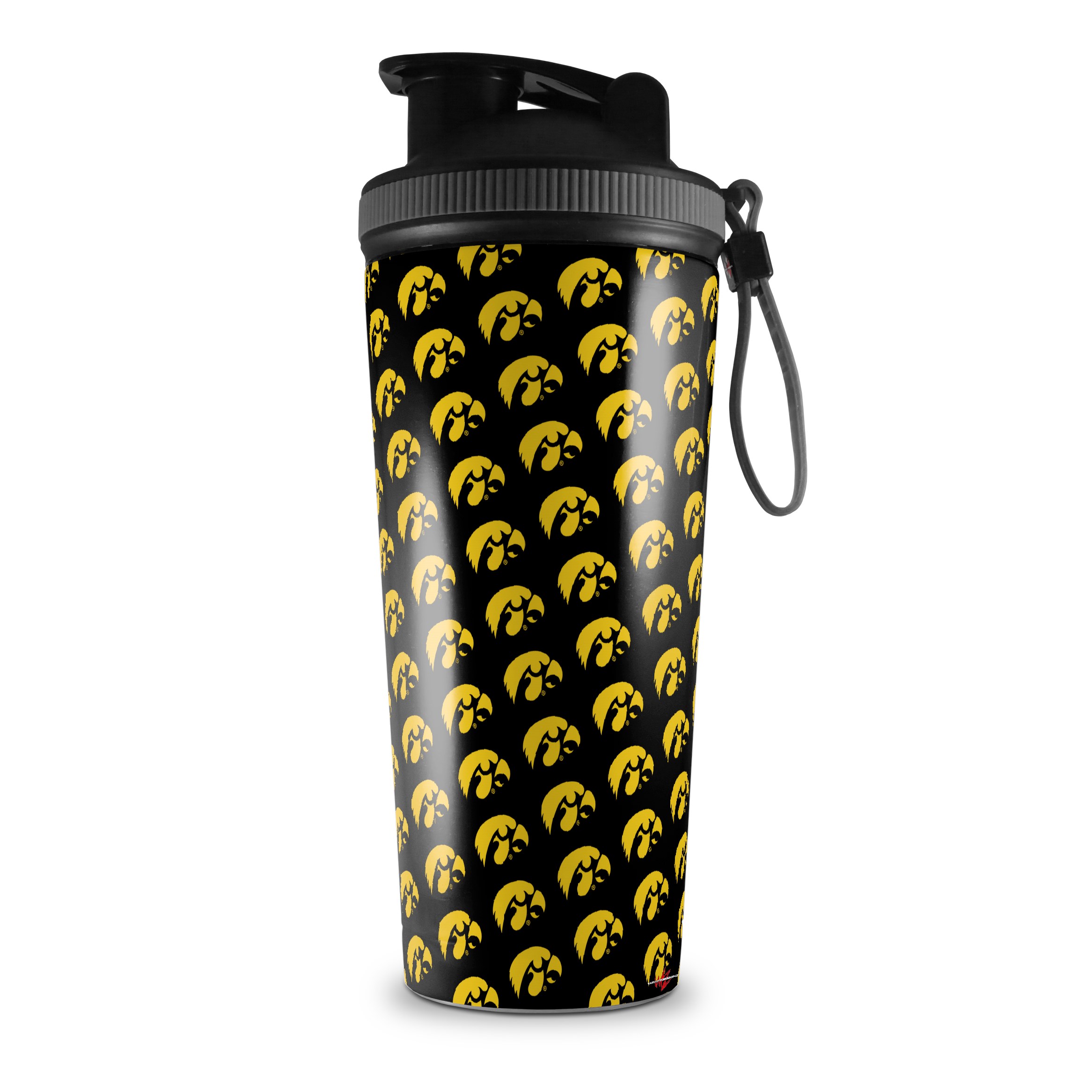 Skin Wrap Decal for IceShaker 2nd Gen 26oz Iowa Hawkeyes Tigerhawk Tiled 06 Gold on Black (SHAKER NOT INCLUDED)