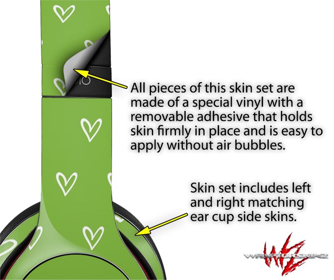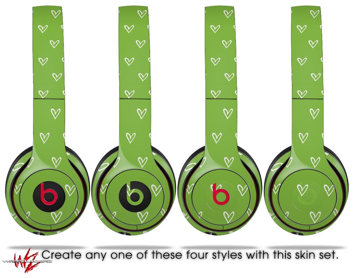 WraptorSkinz Skin Decal Wrap compatible with Beats Solo 2 and Solo 3 Wireless Headphones Hearts Green On White (HEADPHONES NOT INCLUDED)