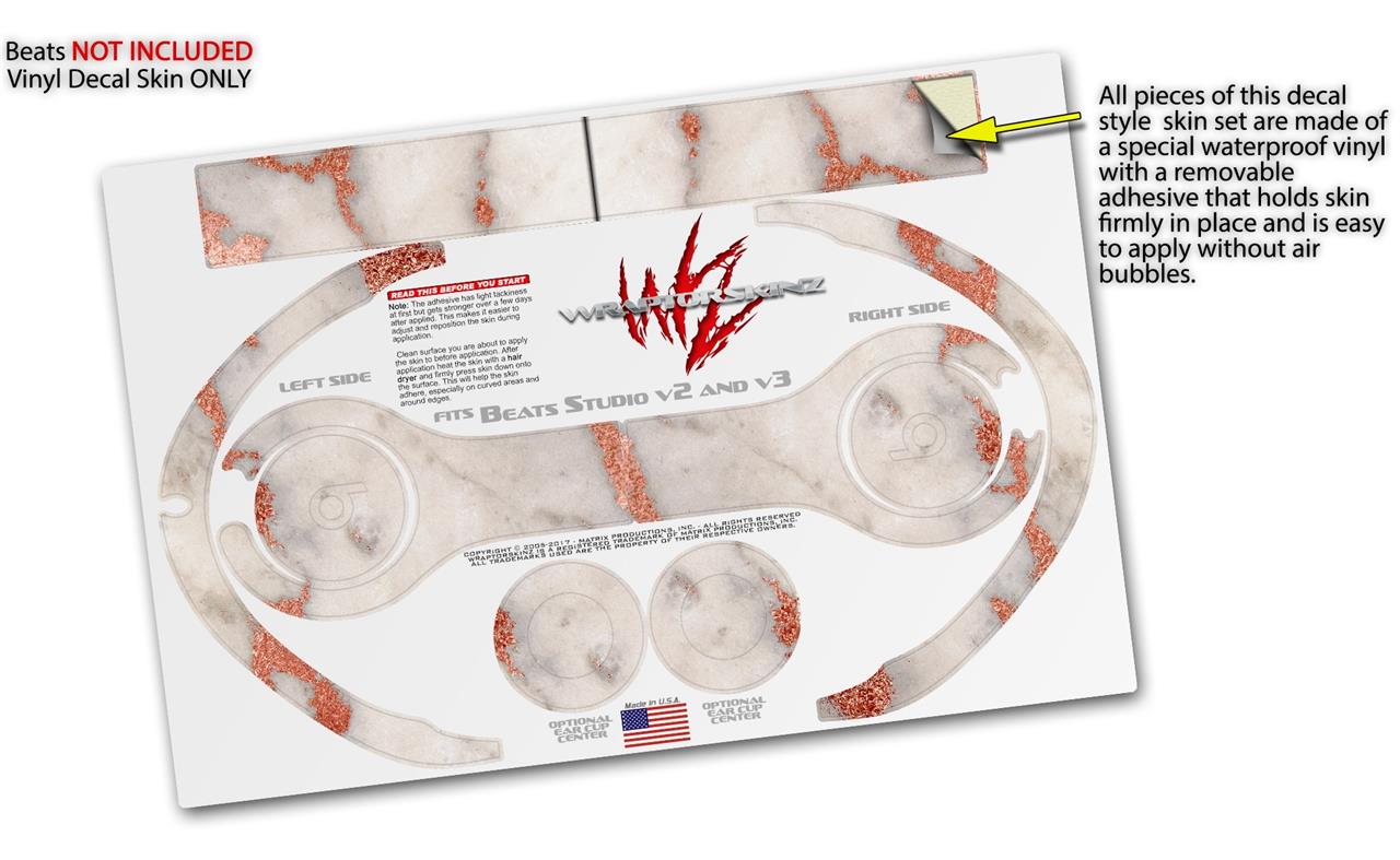 WraptorSkinz Skin Decal Wrap compatible with Beats Studio 2 and 3 Wired and Wireless Headphones Rose Gold Gilded Marble Skin Only (HEADPHONES NOT INCLUDED)
