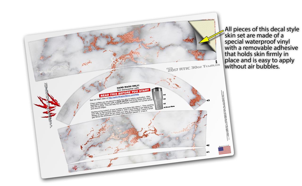 WraptorSkinz Skin Wrap compatible with 2017 and newer RTIC Tumblers 30oz Rose Gold Gilded Grey Marble (TUMBLER NOT INCLUDED)