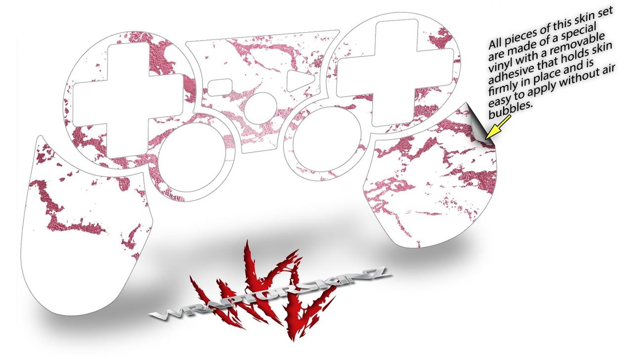 Sony PS3 Controller Decal Style Skin - Pink and White Gilded Marble (CONTROLLER NOT INCLUDED)