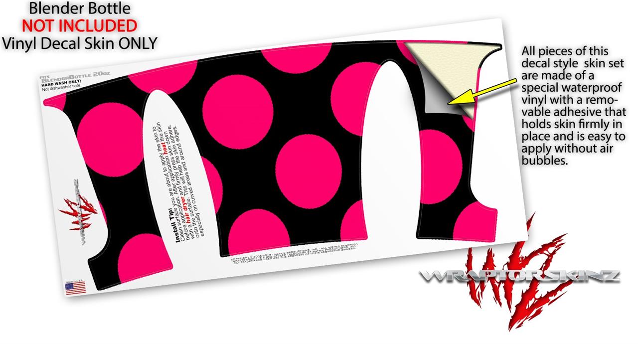 Decal Style Skin Wrap works with Blender Bottle 20oz Kearas Polka Dots Pink On Black (BOTTLE NOT INCLUDED)