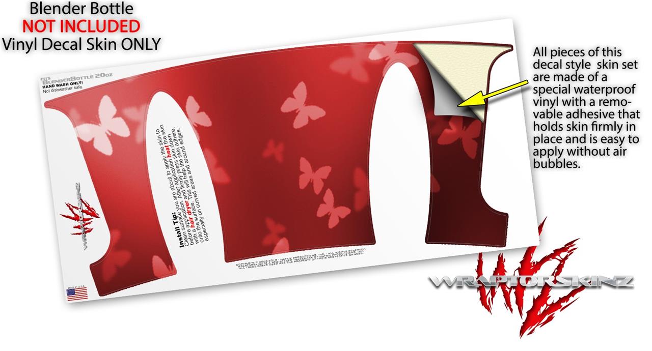 Decal Style Skin Wrap works with Blender Bottle 20oz Bokeh Butterflies Red (BOTTLE NOT INCLUDED)