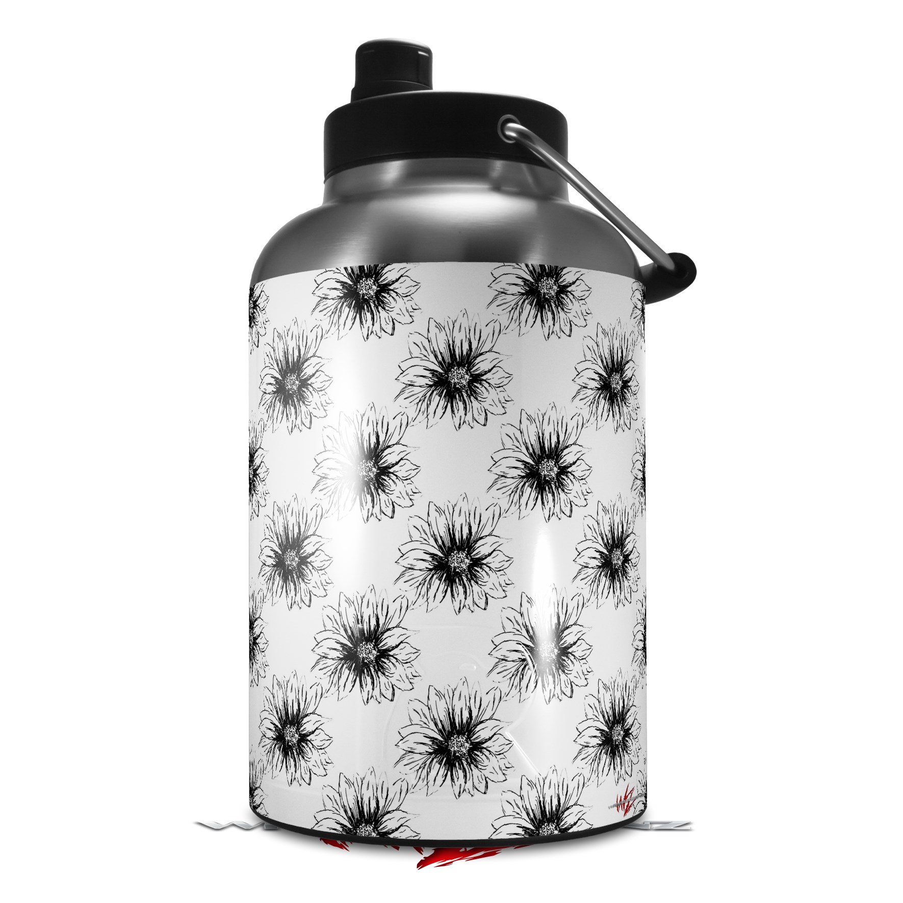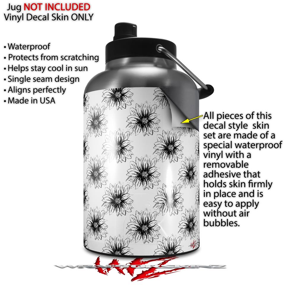 Skin Decal Wrap for 2017 RTIC One Gallon Jug Kearas Daisies Black on White (Jug NOT INCLUDED) by WraptorSkinz