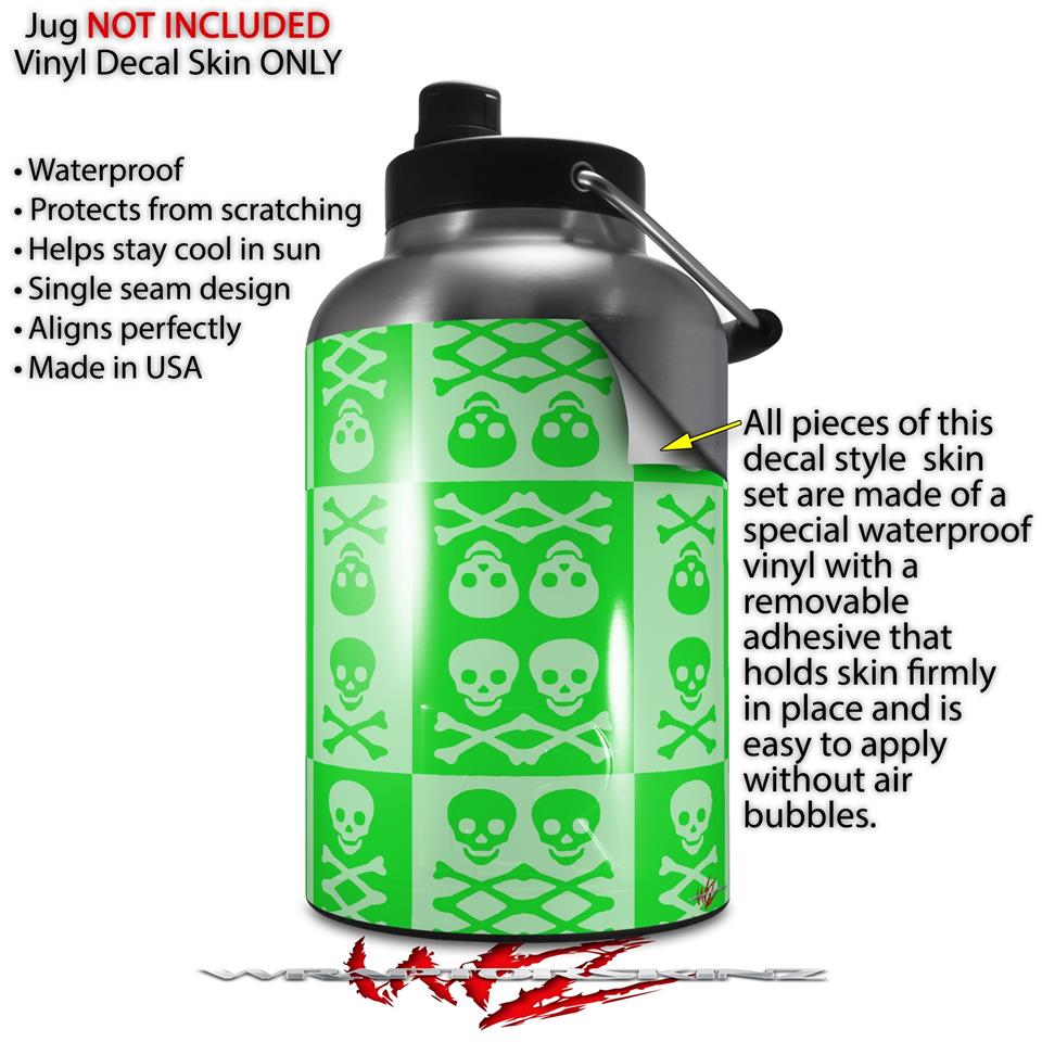 Skin Decal Wrap for 2017 RTIC One Gallon Jug Skull And Crossbones Pattern Green (Jug NOT INCLUDED) by WraptorSkinz