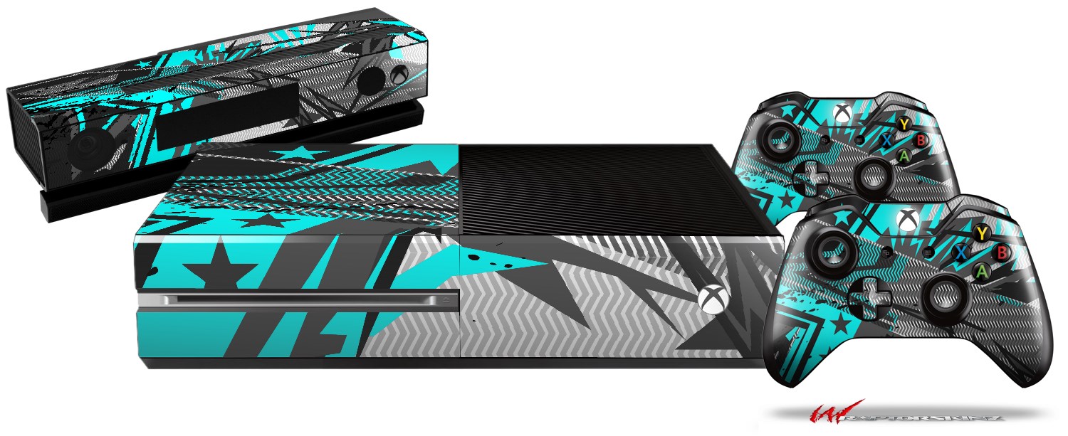 Baja 0032 Neon Teal - Holiday Bundle Decal Style Skin fits XBOX One Console Original, Kinect and 2 Controllers (XBOX SYSTEM NOT INCLUDED)