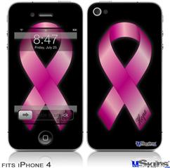 iPhone 4 Decal Style Vinyl Skin - Hope Breast Cancer Pink Ribbon on Black (DOES NOT fit newer iPhone 4S)