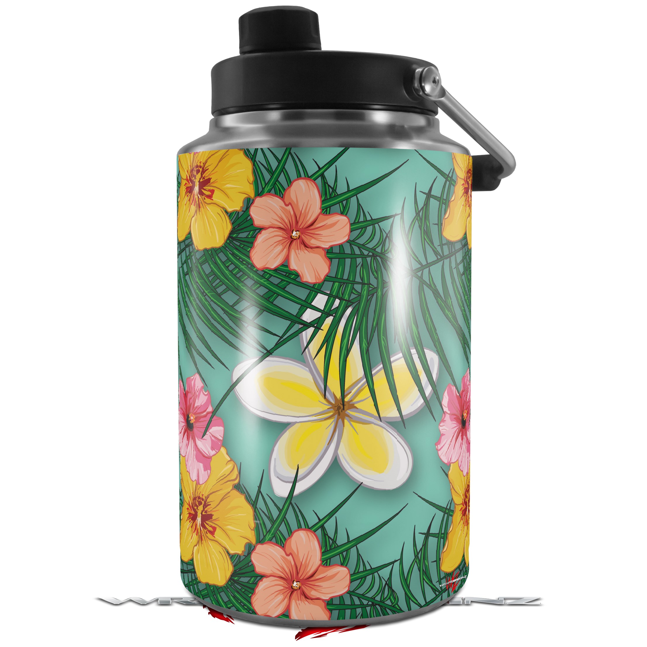 Skin Decal Wrap for Yeti 1 Gallon Jug Beach Flowers 02 Seafoam Green - JUG NOT INCLUDED by WraptorSkinz