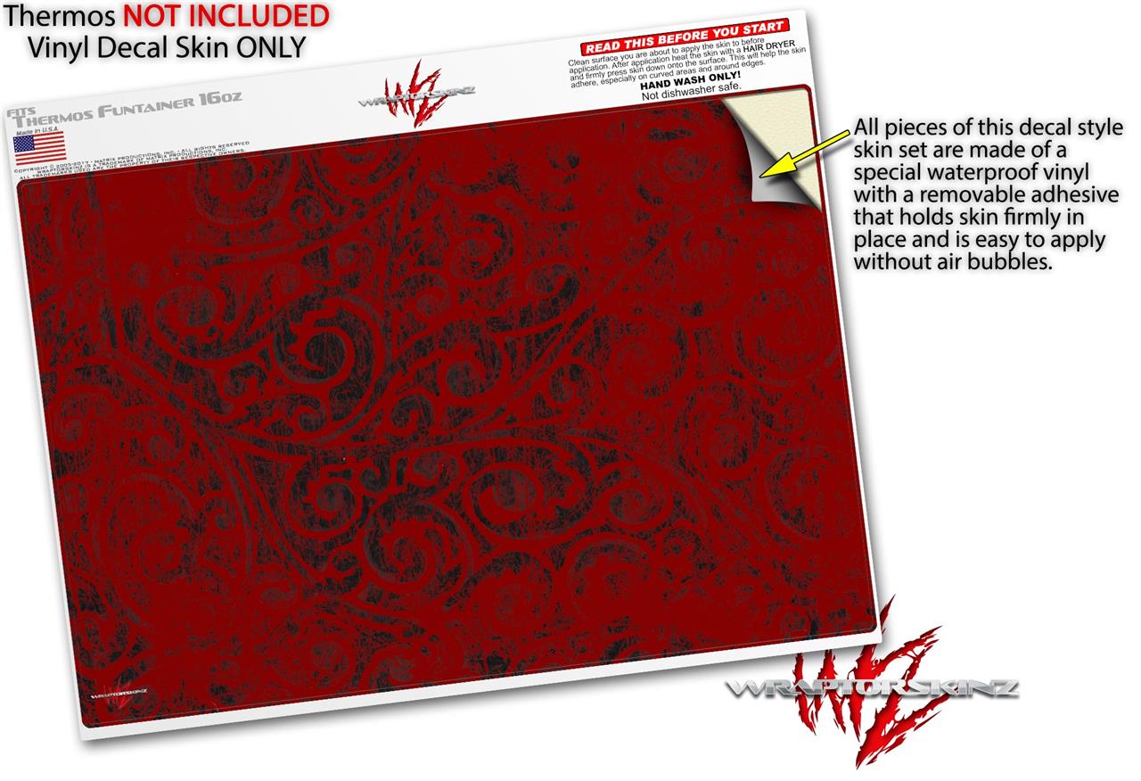 Skin Decal Wrap for Thermos Funtainer 16oz Bottle Folder Doodles Red Dark (BOTTLE NOT INCLUDED) by WraptorSkinz