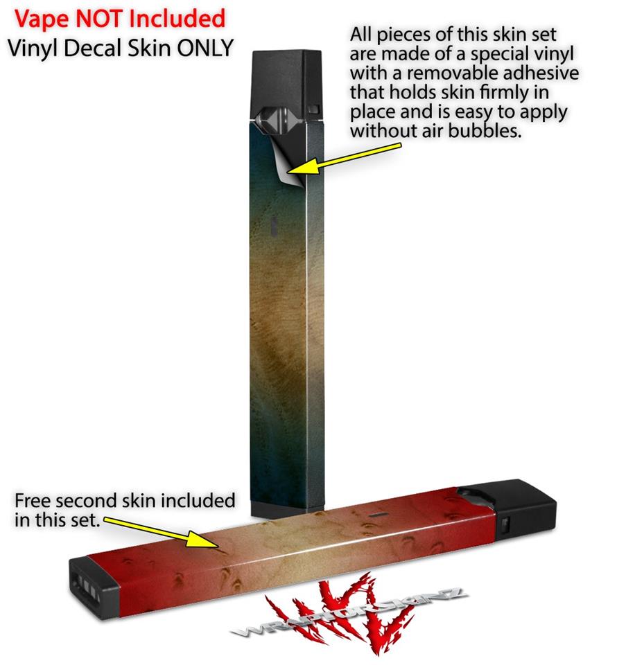 WraptorSkinz® skin wraps are printed using superb photo quality designs and vibrant colors printed with special fade resistant inks that last even in direct sun for years. WraptorSkinz are a composite of two layers of commercial grade materials. The bottom layer is a soft, flexible vinyl with a special removable adhesive that is easily positioned, applied without air bubbles. Next we print the bottom layer with UV protected, fade resistant inks that deliver superb photo quality designs in vibrant colors. Finally we bond a professional grade laminate over the entire skin adding a glossy protective finish. This product is not affiliated with or endorsed by the Juul brand.