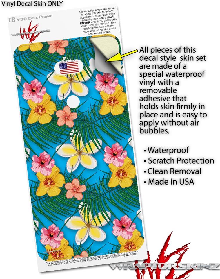 Skin Decal Wrap for LG V30 Beach Flowers 02 Blue Medium