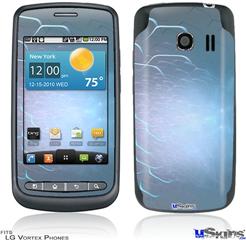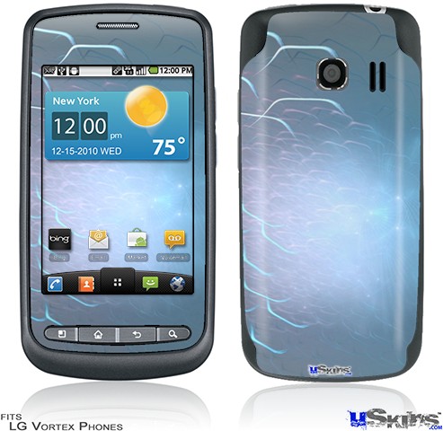Skin covers front and back of LG Vortex cell phone.