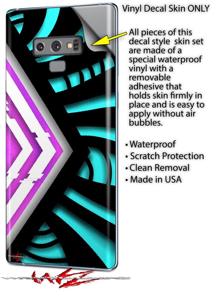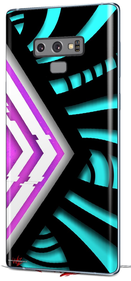 Decal style Skin Wrap compatible with Samsung Galaxy Note 9 Black Waves Neon Teal Hot Pink