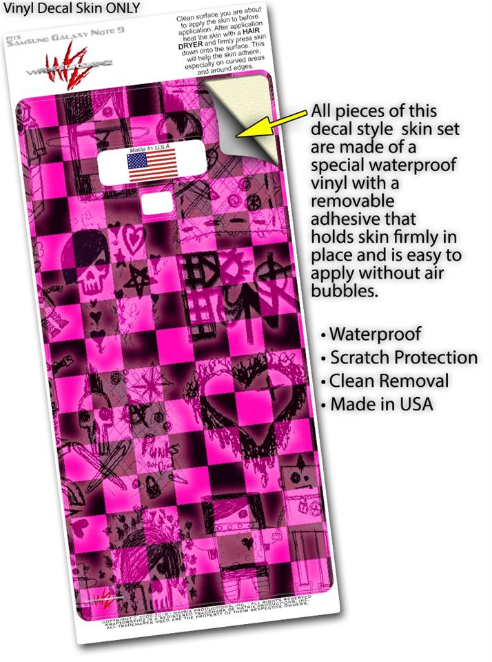 Decal style Skin Wrap compatible with Samsung Galaxy Note 9 Pink Checkerboard Sketches