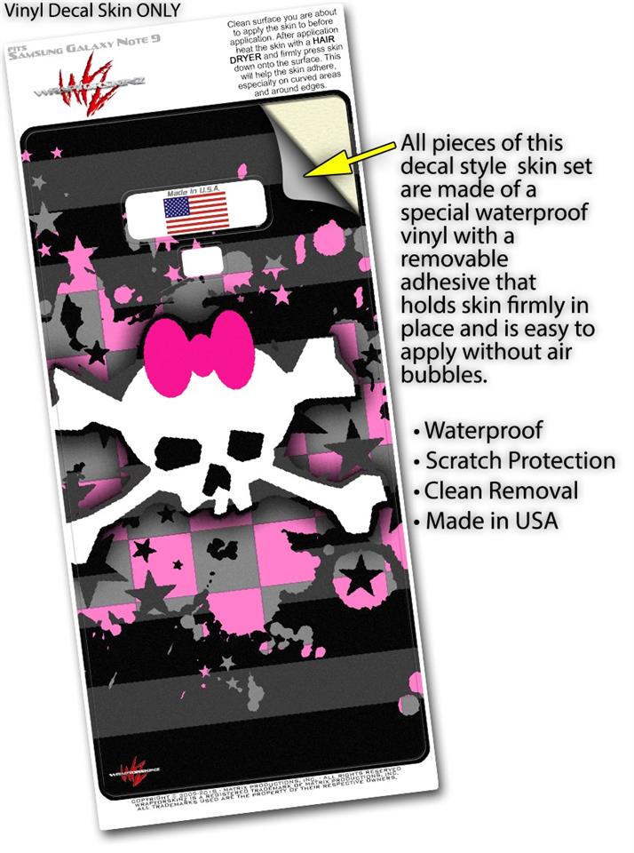 Decal style Skin Wrap compatible with Samsung Galaxy Note 9 Pink Bow Skull