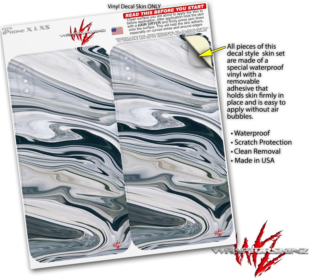 2 Decal style Skin Wraps set for Apple iPhone X and XS Blue Black Marble