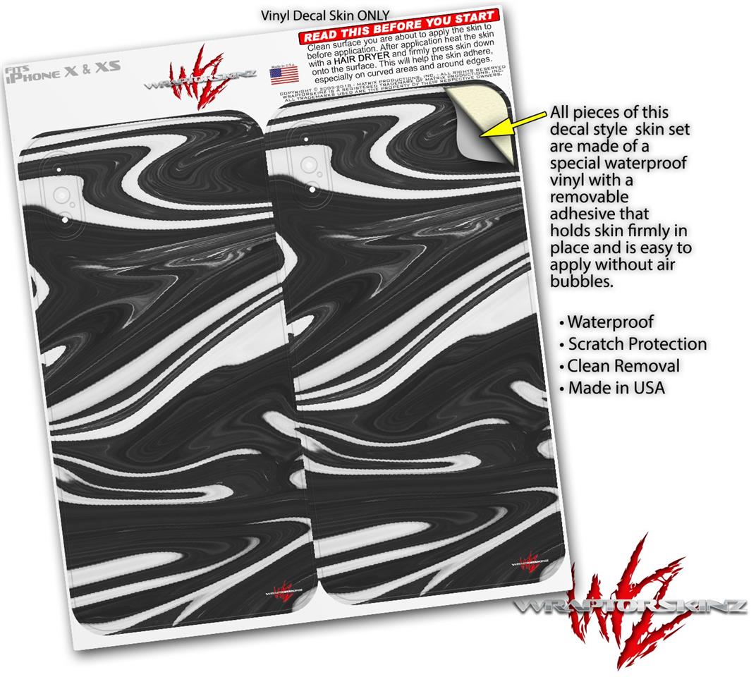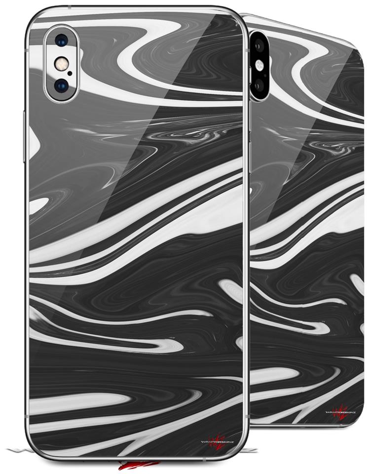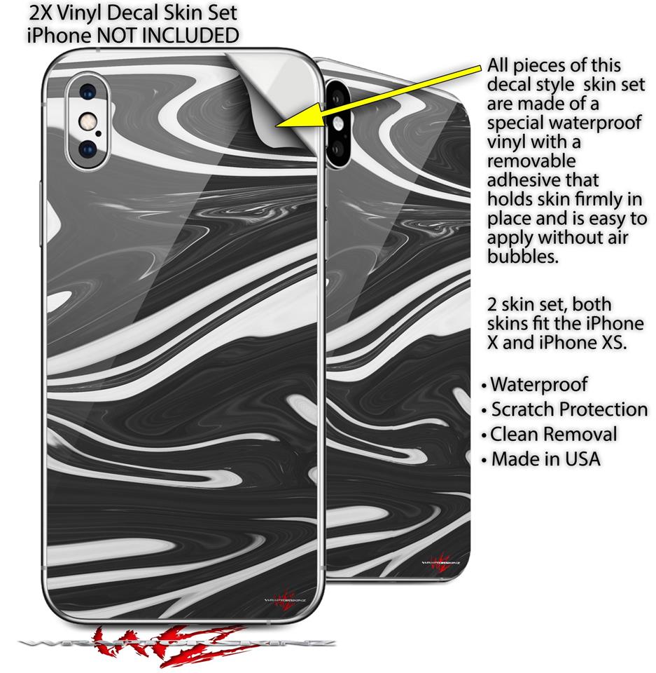2 Decal style Skin Wraps set for Apple iPhone X and XS Black Marble