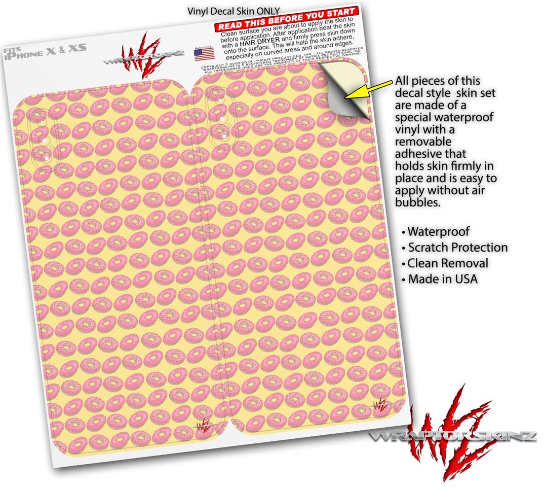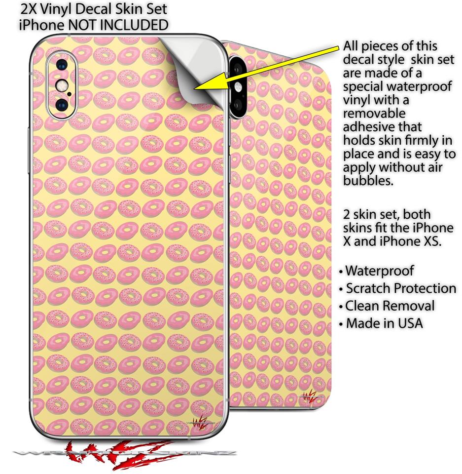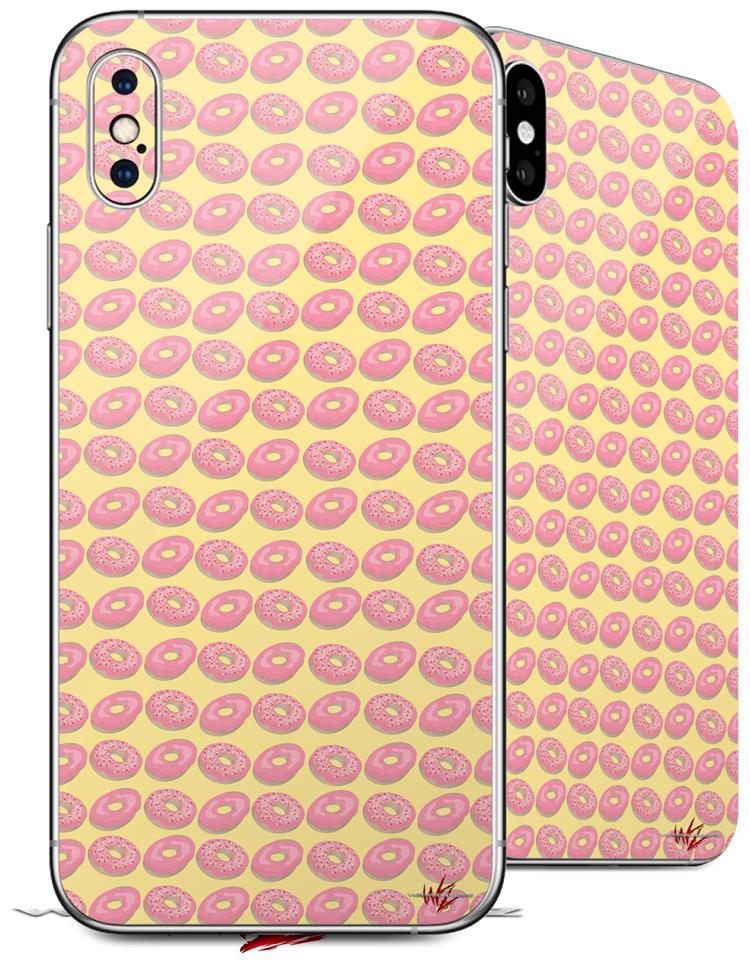 2 Decal style Skin Wraps set for Apple iPhone X and XS Donuts Yellow