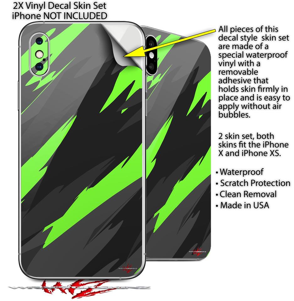2 Decal style Skin Wraps set for Apple iPhone X and XS Jagged Camo Neon Green