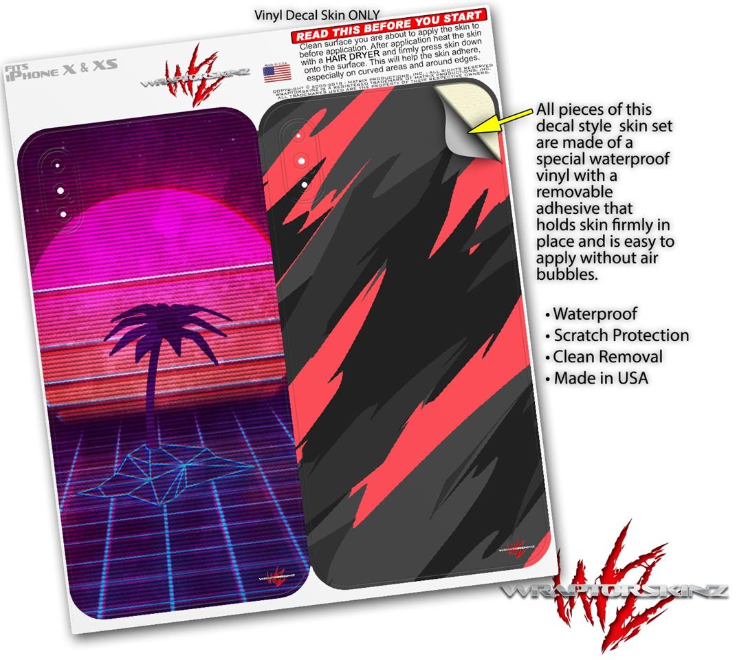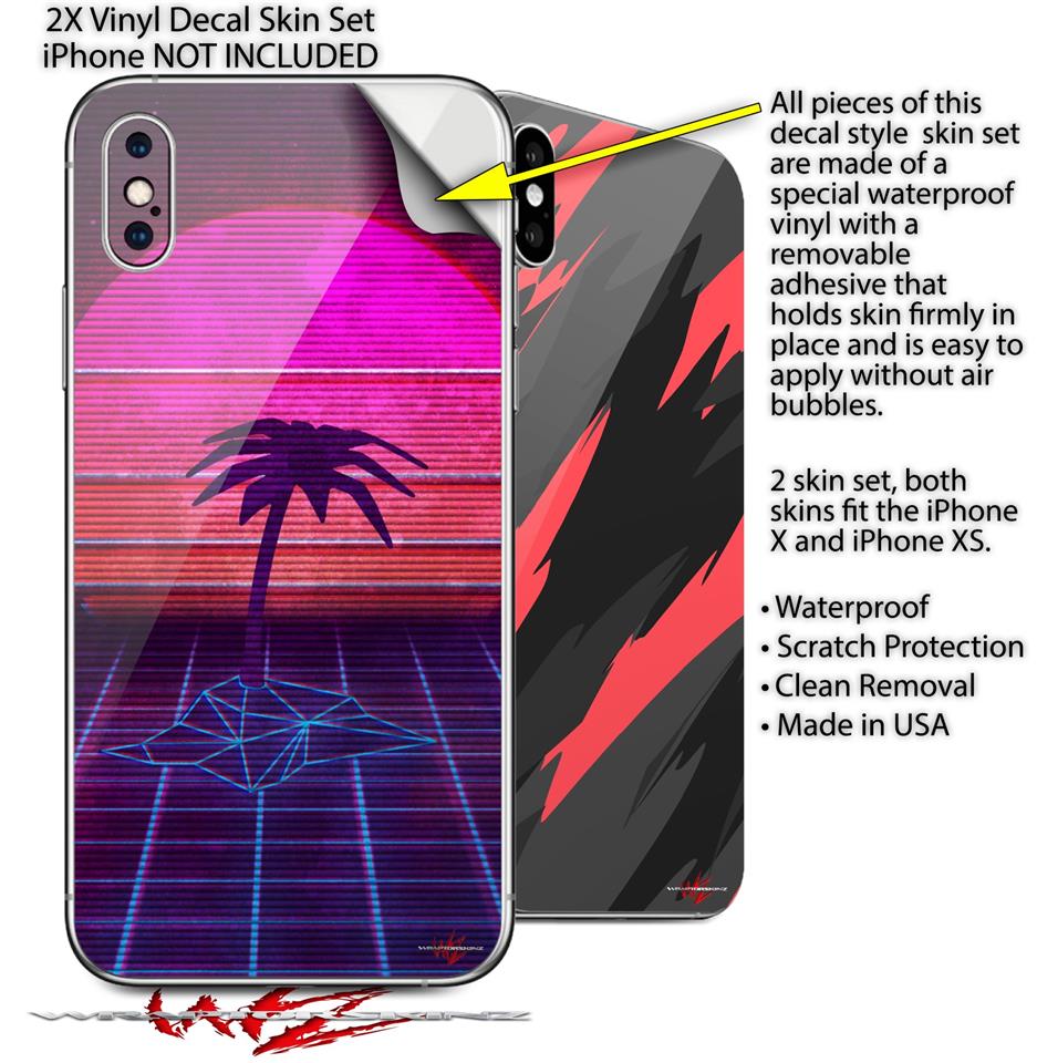 2 Decal style Skin Wraps set for Apple iPhone X and XS Synth Beach