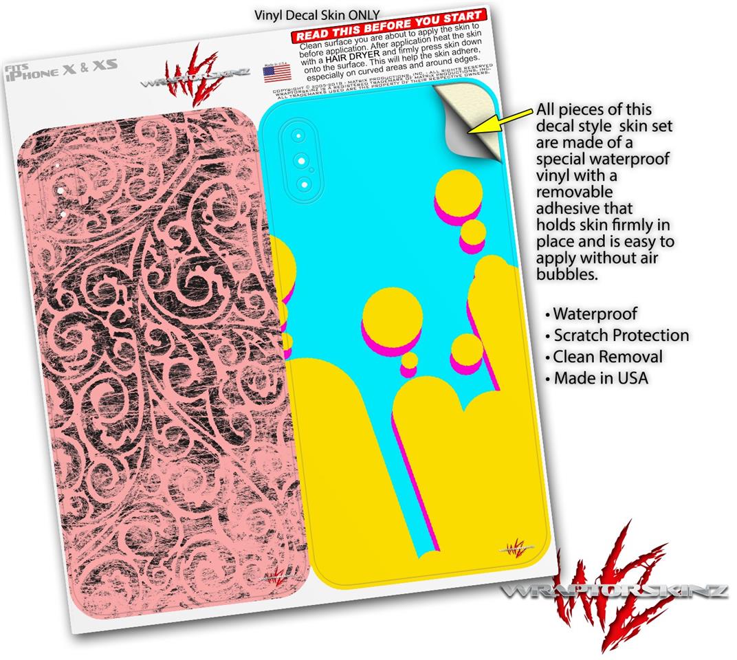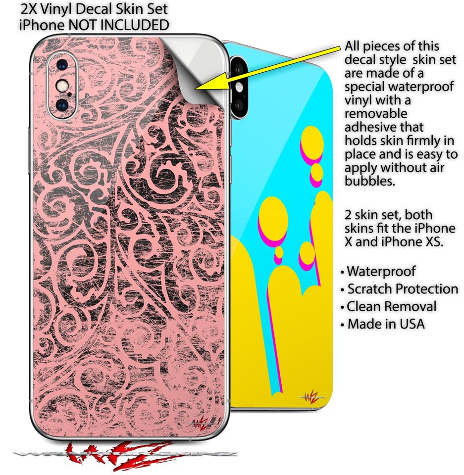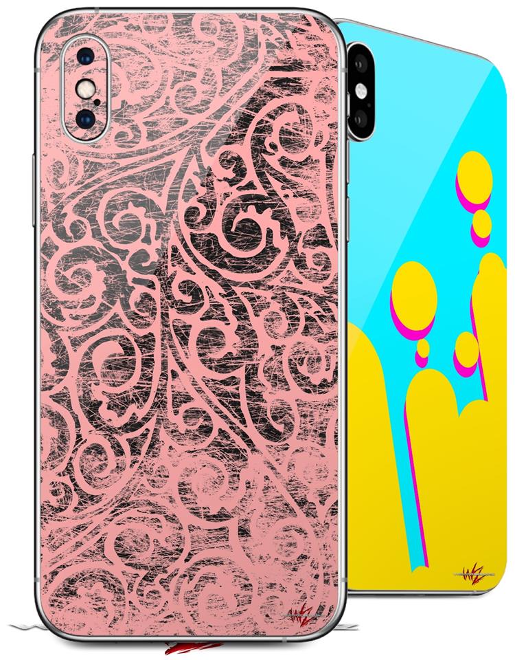 2 Decal style Skin Wraps set for Apple iPhone X and XS Folder Doodles Pink