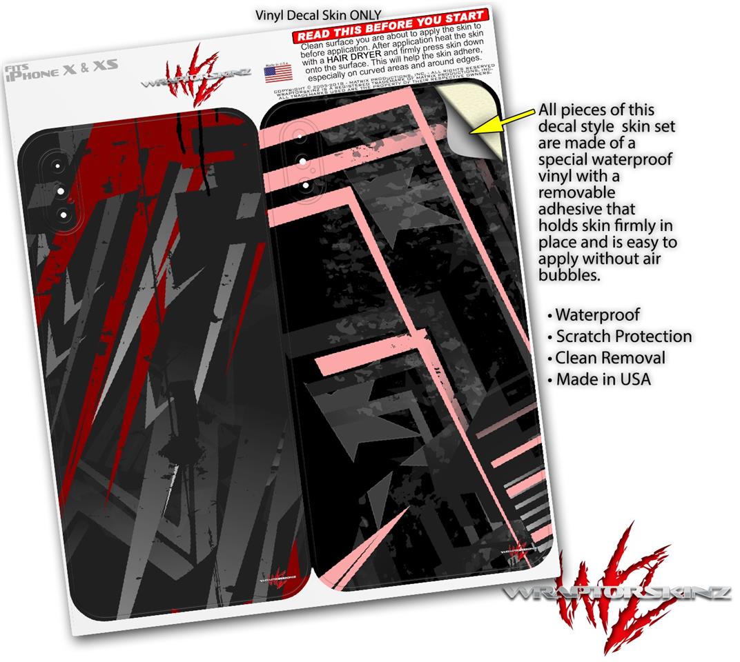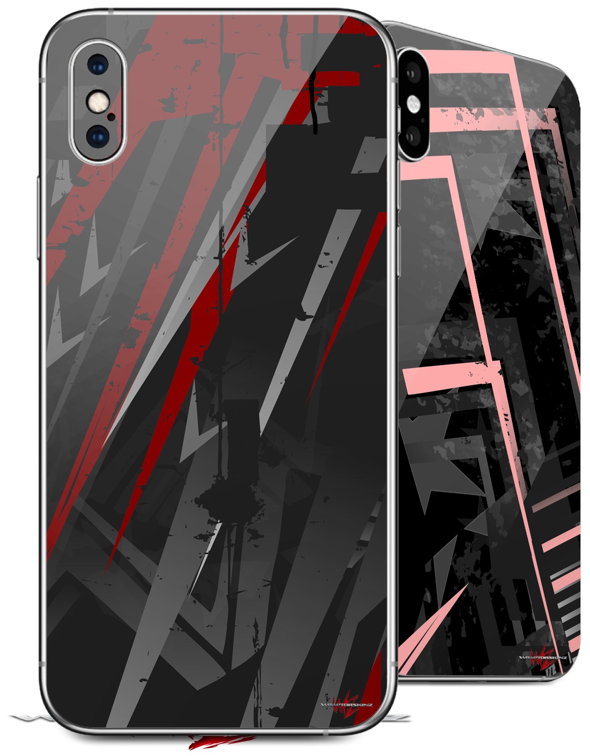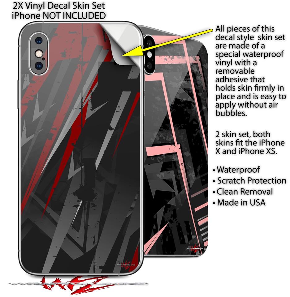 2 Decal style Skin Wraps set for Apple iPhone X and XS Baja 0014 Red Dark