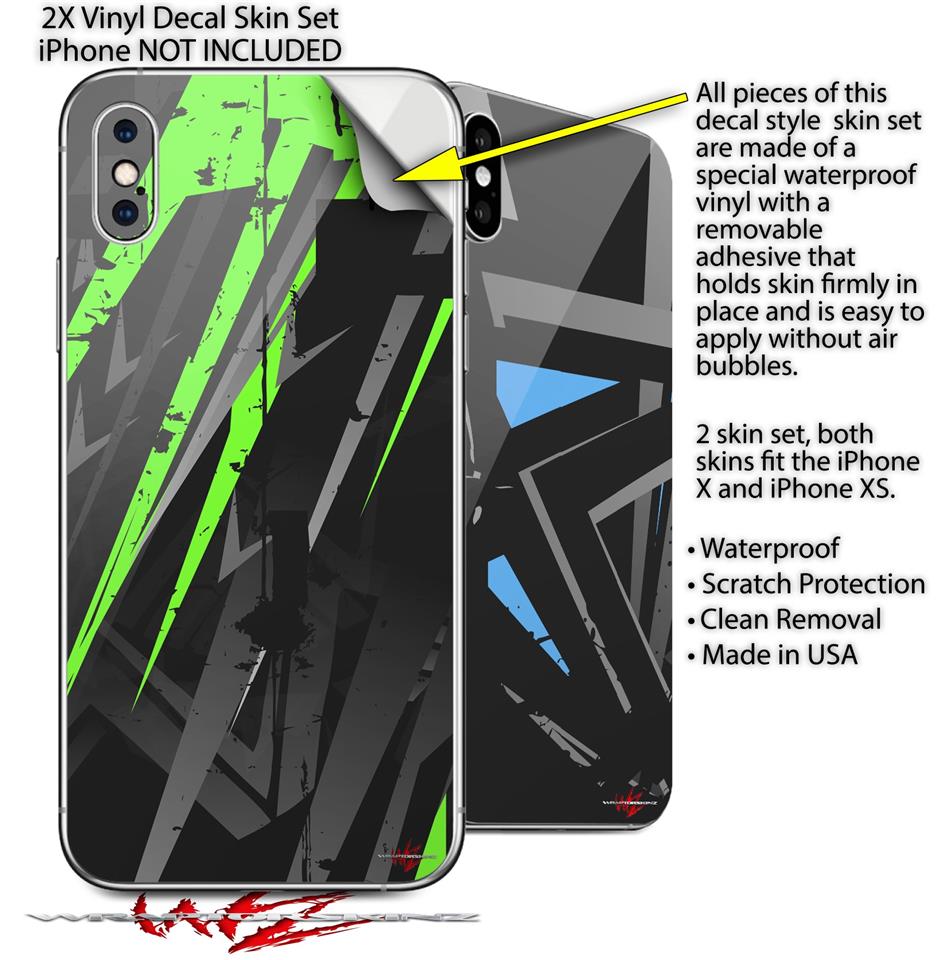 2 Decal style Skin Wraps set for Apple iPhone X and XS Baja 0014 Neon Green
