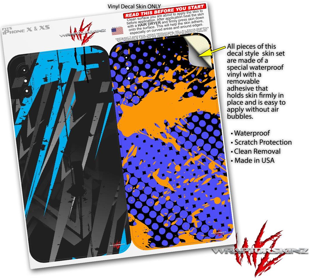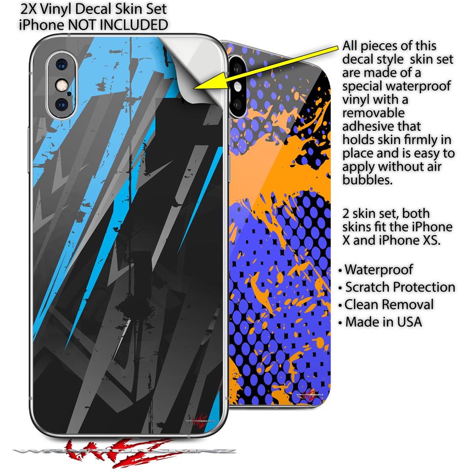 2 Decal style Skin Wraps set for Apple iPhone X and XS Baja 0014 Blue Medium
