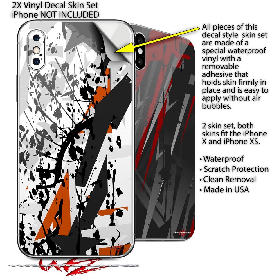 • 2 Decal style vinyl skins covers back side of the Apple iPhone X and iPhone XS - Not a hard case - Compatible with most Clear and TPU cases.