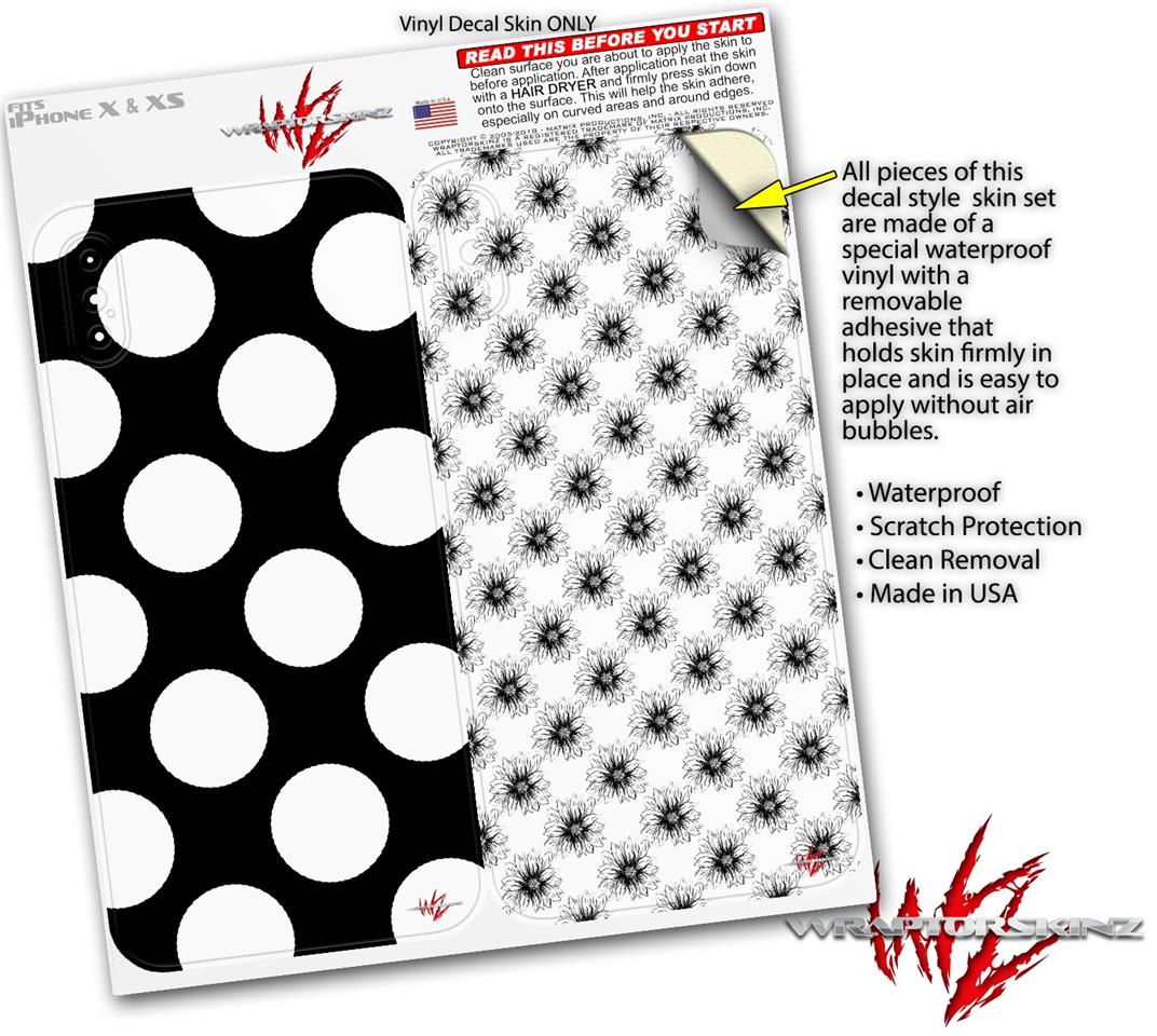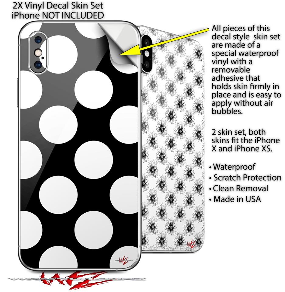 2 Decal style Skin Wraps set for Apple iPhone X and XS Kearas Polka Dots White On Black